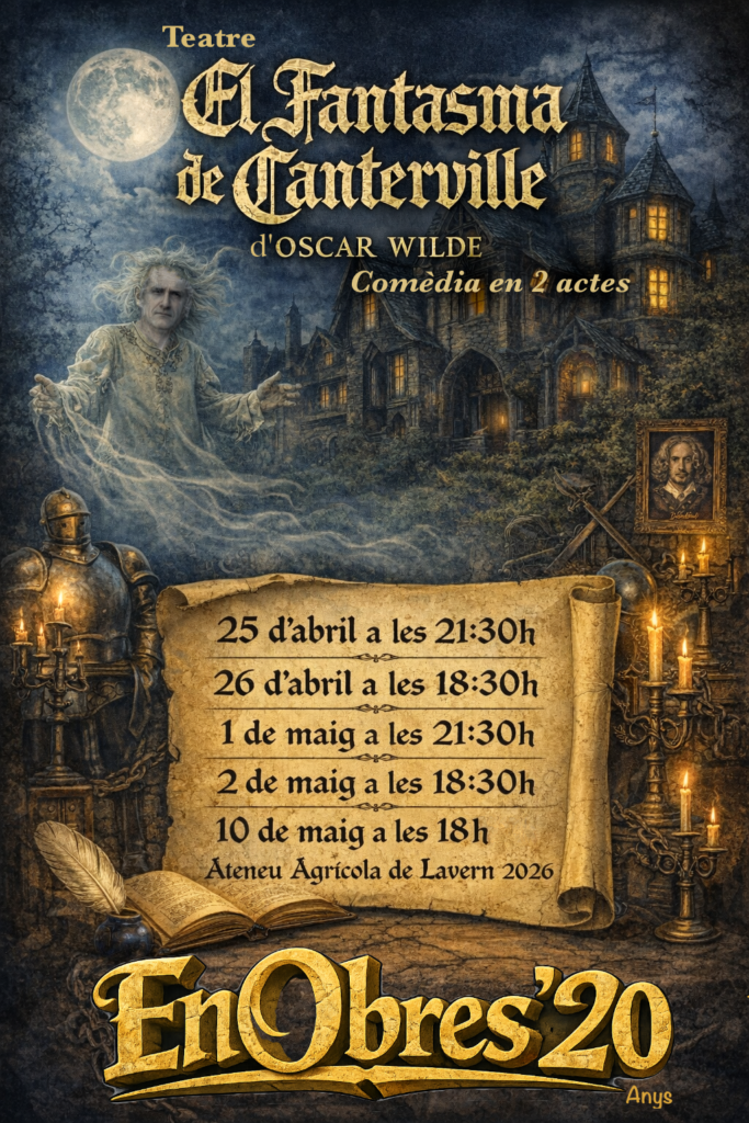 En el cas d’EnObres, la càmera ha entrat a la Sala de l’Ateneu Agrícola de Lavern per captar de ben a prop com es prepara el que serà el 20è aniversari de la companyia: l’obra El Fantasma de Canterville, una obra d’Oscar Wilde amb adaptació de Lluís Capellades, que combina comèdia, efectes escènics i una posada en escena que promet sorprendre.