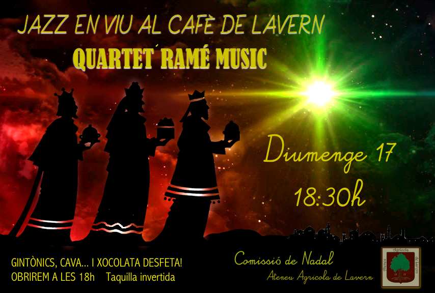 Per primera vegada el Cafè de Lavern acollirà un concert de Jazz. El Quartet Ramé Music, on hi toca el Pau Cuscó, de Lavern. La barra s’obrirà gestionada pels membres de la comissió de Nadal amb l’objectiu de tornar a dinamitzar el Cafè i donar vida al poble.