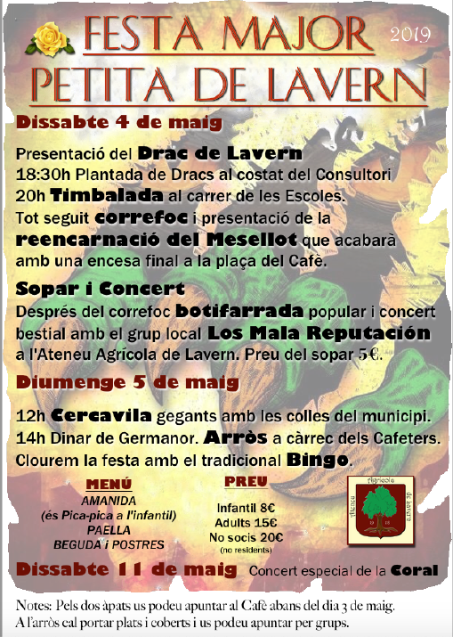 FM petita de LAVERN’19 Publicat el 28/04/2019 per Lluís Rate this post Aquí teniu el programa d’aquest cap de setmana i del dia 11. No us perdeu les novetats!!!
