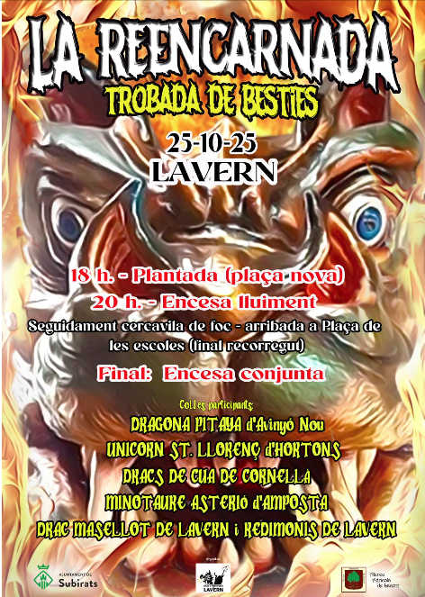El proper 25 d’Octubre cremarem Lavern!!!🔥 Ens visitaran bèsties de foc molt xules!! 🐲🐉 Des d’un Minotaure passant per dracs, dragones i fins i tot un Unicorn!