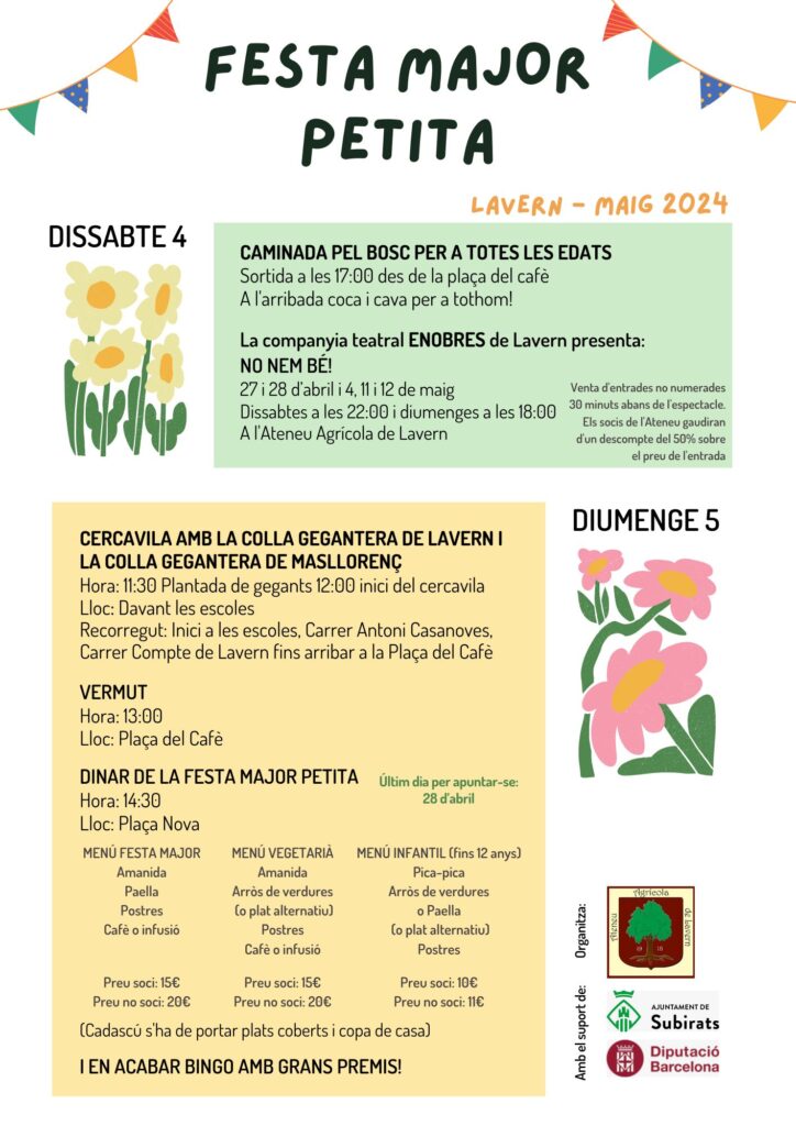 TOT SUBIRATS: Des de la Regidoria d’Acció climàtica s’està organitzant per al 19 de maig la Festa de la Terra. Sota el lema “Emergim! Debats per fer front a l’emergència climàtica”, es vol obrir un espai per reflexionar, debatre i aprendre sobre la situació actual en el nostre municipi des de diversos àmbits (la sequera, els incendis, la transició energètica i els residus). El gruix d’actes és del diumenge, però durant el matí del dissabte 18 de maig s’oferiran dues activitats a Lavern per explicar i conscienciar sobre l’ús de les plantes silvestres comestibles (una dirigida a adults, i una per a públic familiar amb infants, a càrrec del coŀlectiu Eixarcolant). Cada activitat comptarà amb dues fases: una caminada de reconeixement i estima del medi, i un taller per experimentar sobre el que s’ha après. El diumenge 19 de maig, a dins la sala de l’Ateneu de Lavern, es durà a terme un conjunt de taules rodones que ens permetran contextualitzar, analitzar, reflexionar, debatre i proposar alternatives a l’emergència climàtica que vivim. Entenent que no és un fet puntual, sinó que és una situació que ha vingut per quedar-se i que ens afecta molt com a municipi. És per això que abordarem la problemàtica de forma local, rural, feminista i des de diversos punts, constituint taules temàtiques dels diferents elements i tractant temes rellevants (canvi climàtic i incendis, residus, comunitats energètiques, agricultura i sequera). Us animem a venir i a emergir plegades! Vine a buscar el teu kit per estalviar aigua