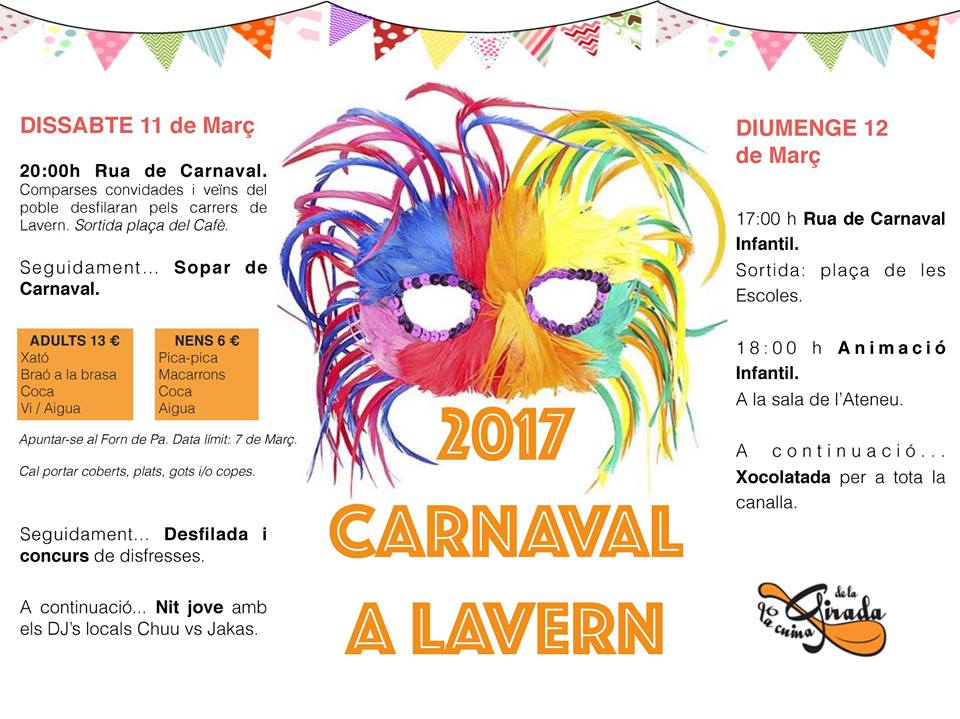 DIVENDRES 24 EXPOSICIÓ fotografica i artística de la gent de Lavern d’11h a 14h a la Sala. I a les 17h CURSA de bicicletes davant les Escoles de Lavern. A les 21h CORREFOC i tot seguit SOPAR DE FESTA MAJOR a l’envelat. PREGÓ a càrrec d’EnOBres i VERSOTS dels Redimonis de Lavern. Tot seguit EMPALMADA amb Dj Chu Vs Jakas i Dj Aitor Trujillo.