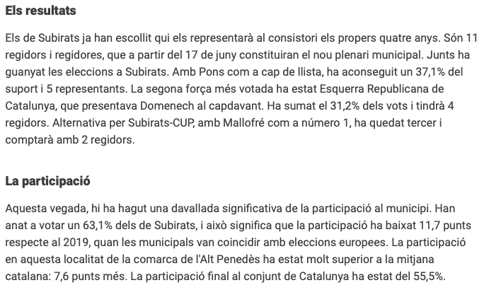 Resultats generals a tot Subirats Font: ccma.cat