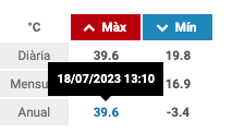 Avui a les 13h del migdia hem assolit el pic de calor de l’any: 39’6ºC(