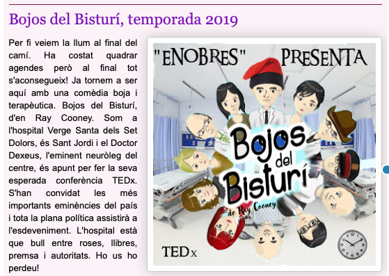 Com cada any “EnObres” estrena una comèdia. Enguany una setmana abans de la FM Petita i amb 5 representacions consecutives a causa de la impossibilitat de fer “bolos” a altres pobles.