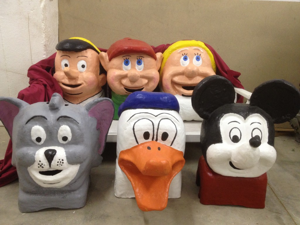 Lavern compta amb sis capgrossos. En Pinotxo, en Donald, en Tom, en Mickey, el Nanet Mut i el Nanet Savi. Tots ells van ser dissenyats per l’Enric Sendra Romeu i els vam fer de fibra de vidre, amb l’ajuda de tot el jovent del poble. Daten de 1996. Amb l’incendi al magatzem del consultori on es guarden, vam perdre en Mickey.