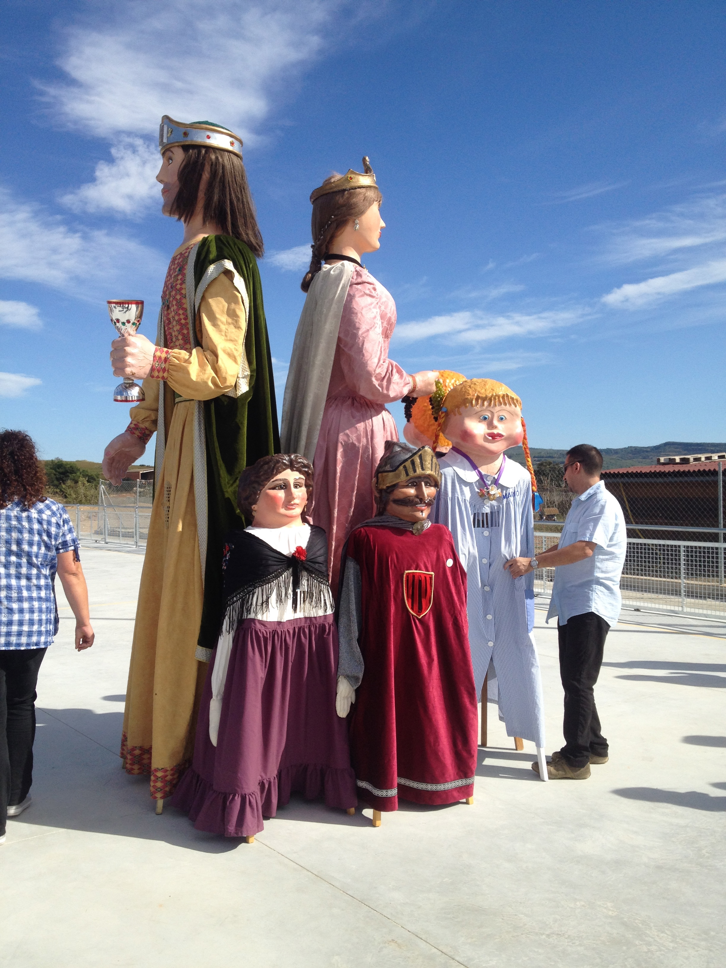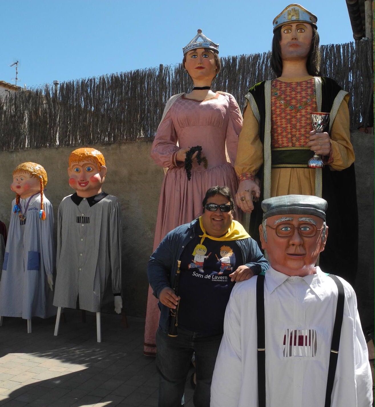 A la foto podem veure de cara la Pagesa i el Cavaller. Els gegantons de Lavern que porten els més joves de la colla. Fotografia presa el dia de la inauguració de la pista de Ca l’Avi.